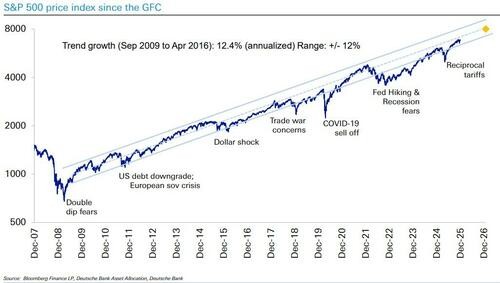 若 2026 年美股再次上涨,将是自全球金融危机以来首次连续四年上涨,其长期走势依然在 2008 年金融危机后形成的稳定增长轨道内。