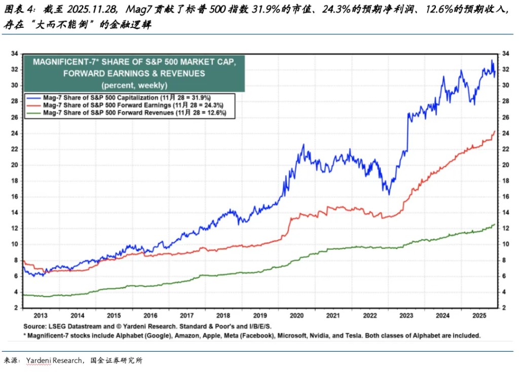 今天 AI 投资的体量和集中度远远超过 2000 年,AI 巨头们的投资规模在经济中占比,以及所带来的正外部性更是 2000 年所不可比拟的。这意味着,一旦这几家 AI 巨头出现问题,对整个金融和科技生态系统造成的冲击将是灾难性的,这是无法用简单的营收或估值指标来衡量的。每一次泡沫的形成机制类似,但表现形式和系统性风险的载体是不同的。
