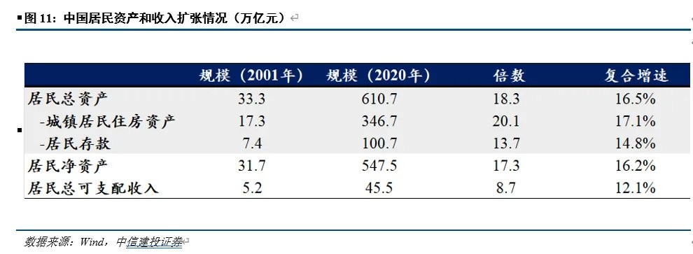 From 2001 to 2020, the assets of Chinese residents increased from 33.3 trillion to 610.7 trillion, expanding approximately 18 times.