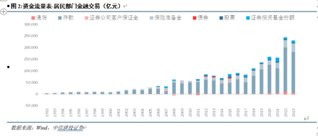 During this period, wealth creation for residents was mainly focused on deposits and real estate, and historical data for these two types of assets is more detailed. Data on financial assets such as funds and wealth management products have weaker traceability, so when discussing Chinese resident assets before 2000, we mainly focus on the two major asset categories of deposits and real estate. Of course, these two categories are also the absolute mainstay of Chinese resident assets.