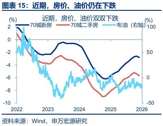 第一,2025 年港股权重板块较弱的业绩表现,导致人民币升值对港股盈利放大作用较为有限。1)人民币升值既会放大港股盈利、也会扩大亏损;2025 年四季度以来,恒指未来 12 个月 EPS 持续走低,弱化了换汇因素对港股盈利的 “重估效应”。2)人民币升值理当利多重资产板块,但近期房价、油价仍未企稳,反而成为了港股的拖累。“资产重估” 逻辑也未对港股有利。