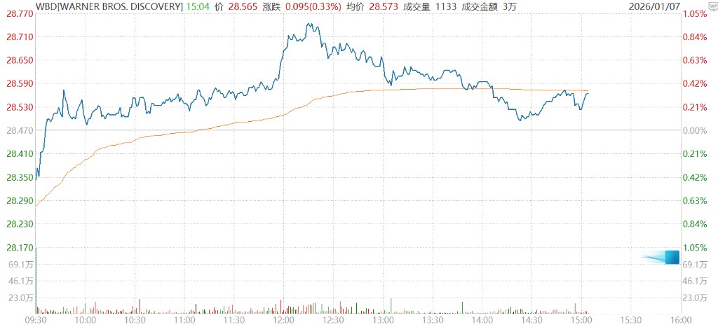 Warner Bros. shares rose 0.33% to $28.55 on Wednesday, still below Paramount's offer.