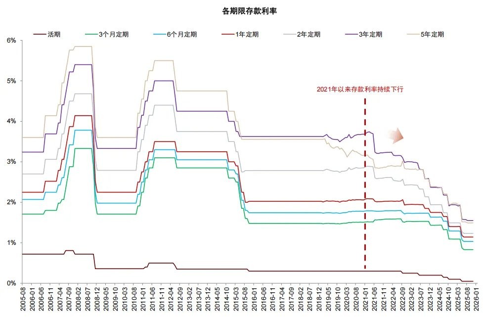 The background of the "massive" deposit maturity narrative. The market's discussion of "massive" deposit maturity can actually be traced back to the high growth of long-term household deposits in 2022-2023: during that time, the net increase in household deposits reached 28 trillion yuan over two years, resulting in about 5 trillion yuan of "excess deposits" compared to the level in 2021. This portion of deposits will gradually mature in 2025-2026. However, we believe that deposits are not the only form of household savings; household savings should also consider deposits and bank wealth management products. In fact, the high growth of deposits in 2022-2023 was mainly due to the reallocation of wealth management, as the rapid rise in bond market interest rates led to a "negative feedback" of net value retracement and redemptions in wealth management products. Therefore, we believe that this portion of "excess deposits" is similar in nature to wealth management products, primarily involving a shift in allocation among low-risk preference assets.