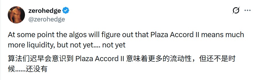 金融博客 Zerohedge 则表示,“广场协议 2.0” 或意味着市场将迎来更多的流动性。