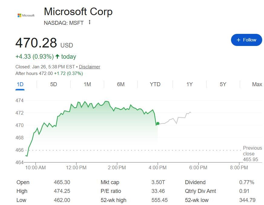 发布 Maia 200 后,美股早盘尾声时,盘初转涨的微软股价涨幅扩大到 1% 以上,临近午盘时曾涨逾 1.6%,收涨逾 0.9%,连续三个交易日收涨,刷新将近两周来收盘高位。