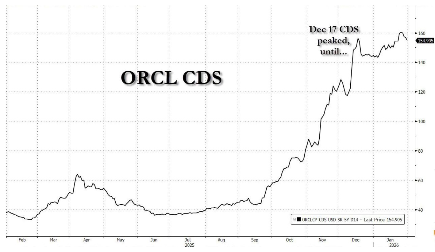 甲骨文正陷入一场流动性危机。其周日宣布今年拟筹资 450 亿至 500 亿美元,用以扩张 AI 数据中心,而此前多家投行已发出警告,称其可能最早在 2026 年底耗尽现金。与此同时,其股价已较去年 9 月的峰值腰斩,信用违约掉期 (CDS) 价格飙升至 2008 年金融危机以来最高水平。