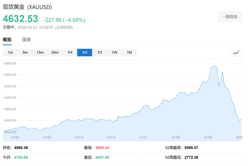 On Monday, the precious metals market continued the downward trend from Friday, with spot silver plummeting 7% in a single day and spot gold crashing 4.7%, briefly falling below the $4,500 mark.