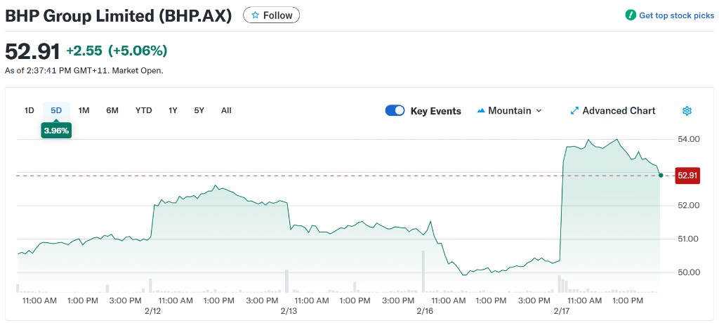 The Australian mining giant announced on Tuesday that for the six months ending December 31 last year, revenue rose 11% year-on-year to $27.9 billion, and profit attributable to shareholders increased by 28% to $5.6 billion. The performance exceeded analysts' expectations, and the company's stock price opened up 5.3%.
