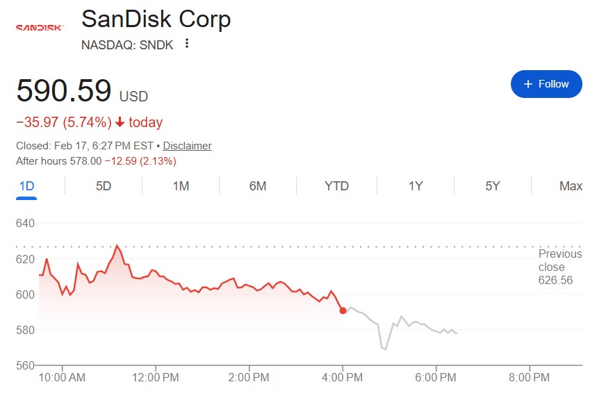Western Digital sells $3 billion worth of Sandisk shares, and Sandisk's stock price drops 2% after hours
