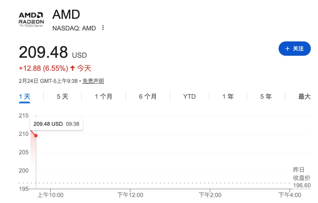 美股芯片板块拉升,AMD 拿下大单股价上涨