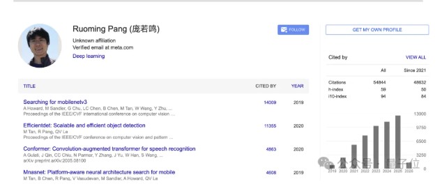 Looking solely at his academic credentials, Pang Ruoming's achievements are also quite impressive. Google Scholar shows that his total citation count exceeds 50,000.