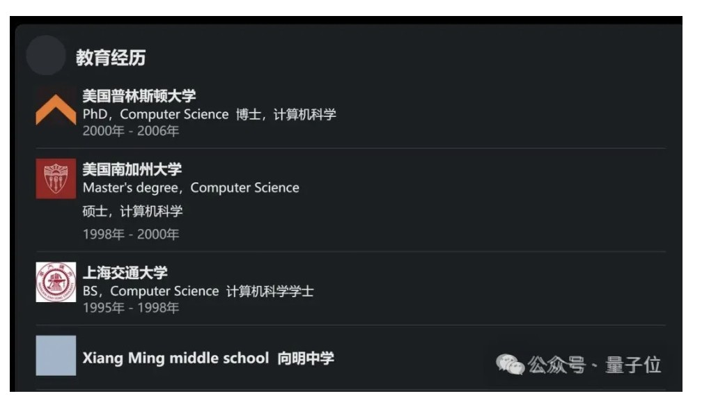 Public information shows that Pang Ruoming graduated with a bachelor's degree from Shanghai Jiao Tong University and obtained his master's and doctoral degrees from the University of Southern California and Princeton, respectively.