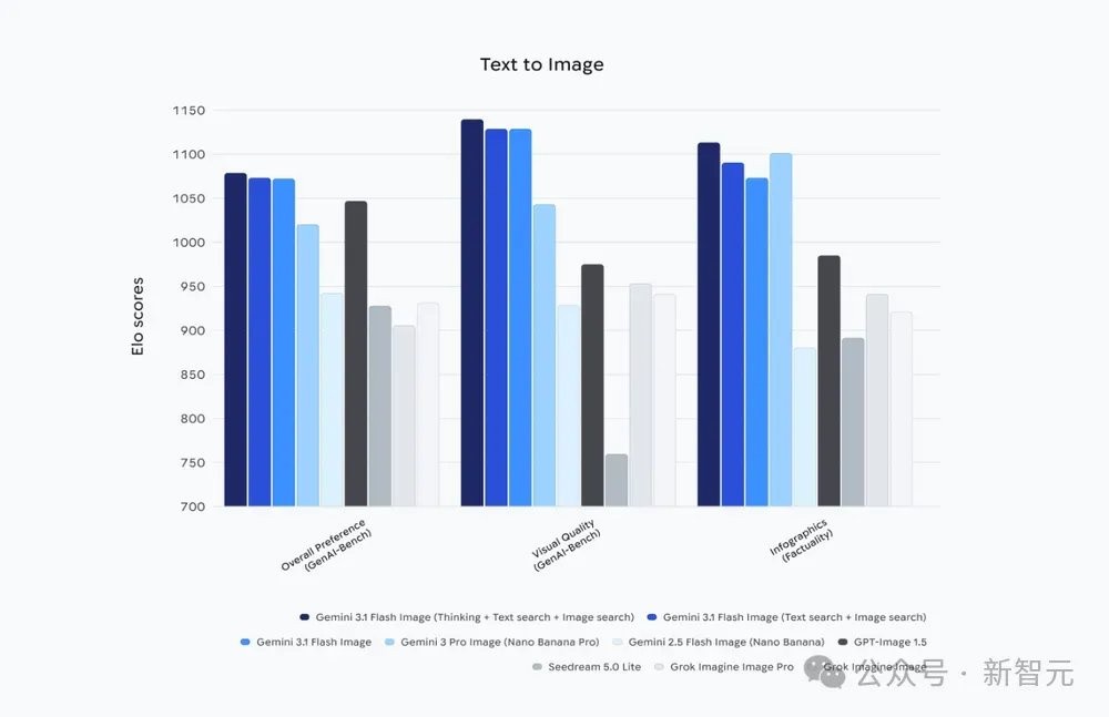 谷歌官方测评中,NB2(开启 Thinking + 文本搜索 + 图像搜索后)在整体偏好、视觉质量和信息图表准确性三个维度上,不仅全面压制了 GPT-Image 1.5、Grok Imagine Image Pro 等一众竞品,甚至还超越了大哥 Nano Banana Pro。