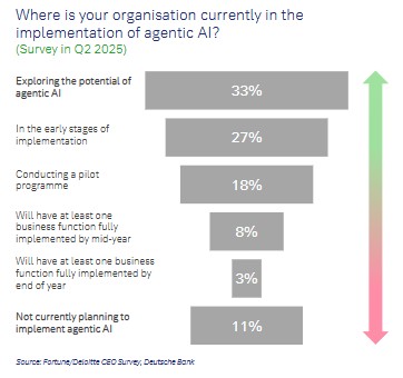 11% of companies explicitly stated that they have no plans to implement intelligent agent AI.
