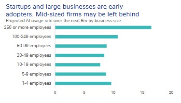 It is worth noting that medium-sized enterprises with employee counts between 50 and 249 have a significantly lower AI usage rate.