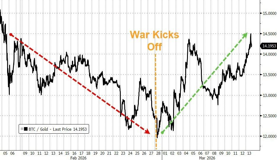 Bitcoin surged and then retreated, rising over 5% at one point to reach $74,000. Ethereum increased by 2.4% compared to yesterday's close. Since the U.S.-Iran conflict began, Bitcoin's increase relative to gold has been very significant.