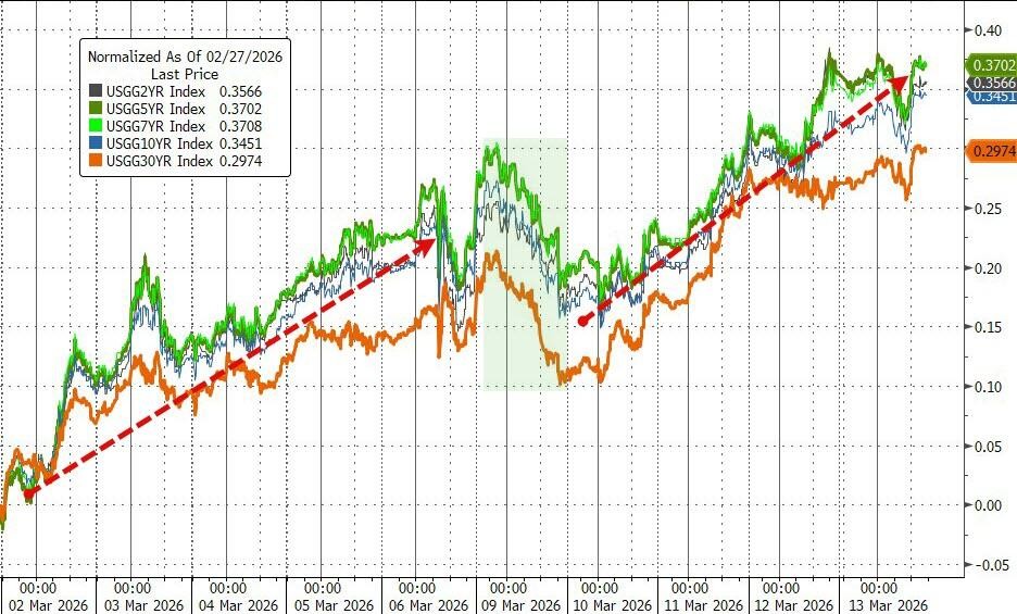 Weak GDP and stagnant PCE data indicate that the momentum of U.S. economic growth has weakened before the outbreak of war. U.S. Treasury yields briefly plunged, but the 10-year yield reversed its intraday losses, ultimately rising by 1 basis point, while the 2-year yield still fell by 2.8 basis points.