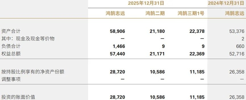 在 “单独重大的合营企业财务信息” 章节中,新华保险披露了鸿鹄志远(即鸿鹄基金第一期)的资产总额。