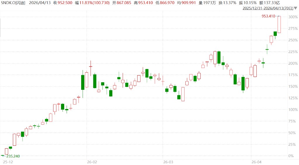 多重利好同步催化,存储芯片股闪迪股价周一大涨,年内涨幅已超 300%。