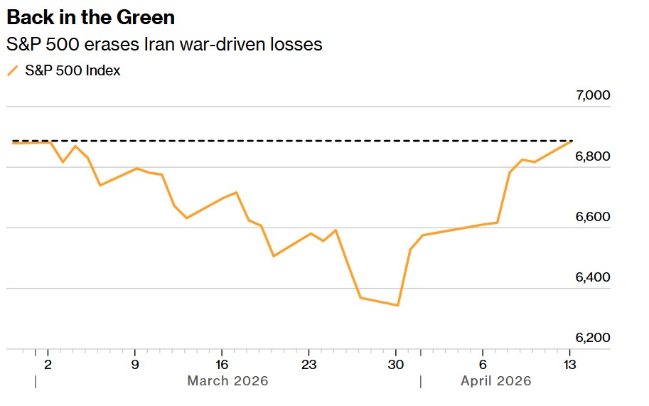 如上圖所示的那樣,標普 500 指數抹去伊朗戰爭引發的跌幅。