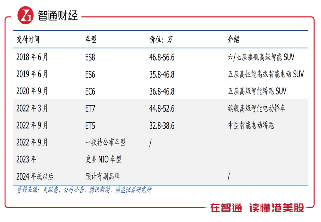 智通财经 APP 了解到,2022 年将上市的三款车型,售价在 30-50 万元区间,最高续航里程均超过 1000 公里,智能化程度处于行业领先。如 ET7 是蔚来首款轿车,也是首款具备自动驾驶能力的智能电动轿车,最高搭载的 150kWh 续航超 1000 公里,搭载高通第三代数字座舱计算平台,全球首个车载人工智能系统 NOMI 持续进化。
