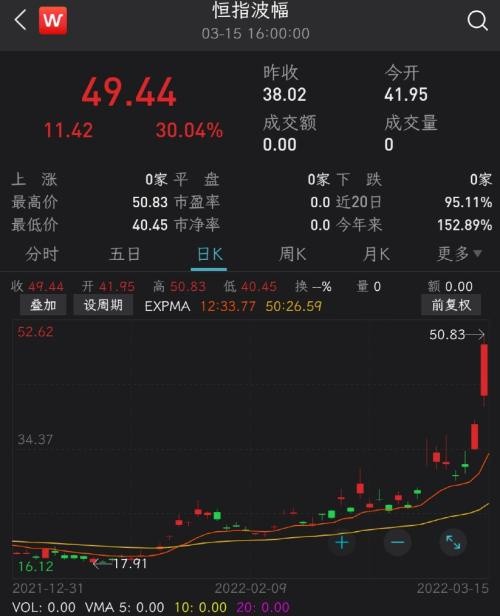 恐慌情绪指标恒指波幅一度飙至 33%,破 50 关口,收于 49.44,创下自 2020 年疫情爆发时新高。这一指数反映一段时间内恒生指数波动的快慢,被视为判断投资者情绪变化的有效指标。若该指数处于较高位置,表示市场预期恒生指数未来一段时间有较大变动,且投资者情绪不稳定。一般高于 40,意味着市场极度恐慌。