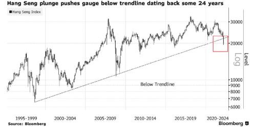 从技术图形来看,目前恒生指数已经跌破了 24 年跨度的支撑线。
