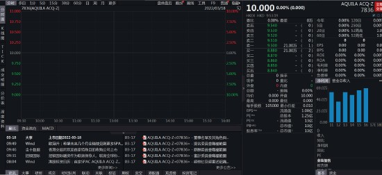 3 月 18 日消息,香港首家 spac 在香港挂牌上市,Aquila Acquisition 每手买卖单位 10.5 万股,一手至少 105 万港元,公司今日挂牌上市,上市半小时没有任何成交,目前报价 10 港元...