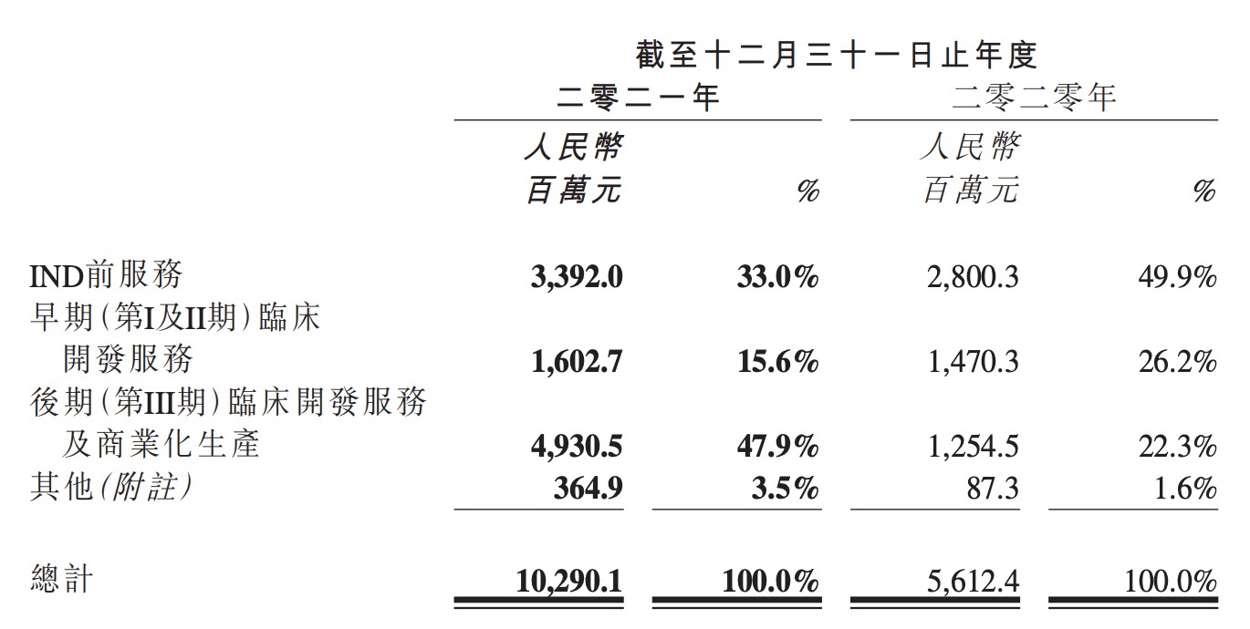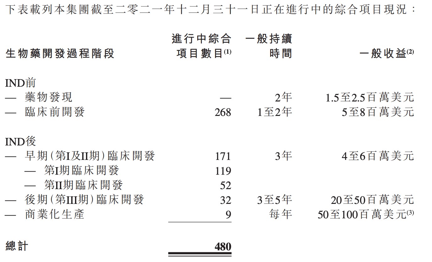 药明生物在年报中提到,公司综合项目由上年同期的 334 个,增长 43.7% 至 21 年 480 个。