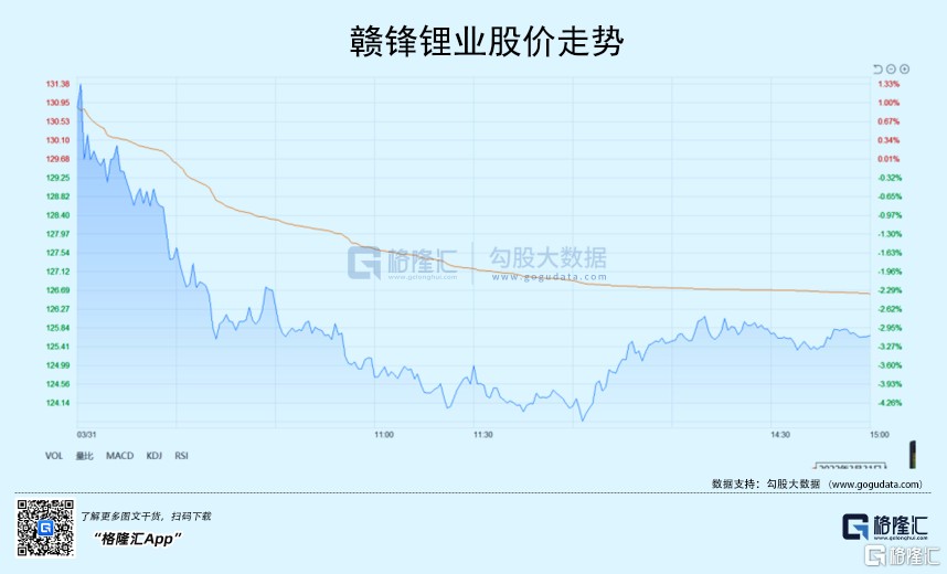 不但赣锋,整个锂电板块都在下挫,科达制造跌停,盛新锂能跌 6%,藏格矿业、西藏珠峰、盐湖股份、西部矿业跌逾 5%,西藏城投、西藏矿业、天齐锂业跌逾 4%。