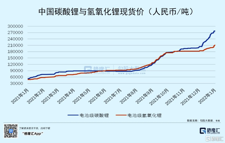 作为锂电池最重要的原材料之一,碳酸锂/氢氧化锂的价格从 2020 年中期起就出现了周期反转,2021 年由于疫情加剧供应链紧张,以及电动车需求的井喷,涨价现象更加严重。