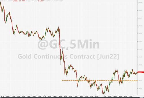 COMEX 6 月黄金期货收跌 0.2%,报 1955.40 美元/盎司,连跌两日至一周低位。周二金价曾因美联储官员的鹰派言论一度跌 1.8%,因美债收益率走高提升了持有黄金的机会成本。