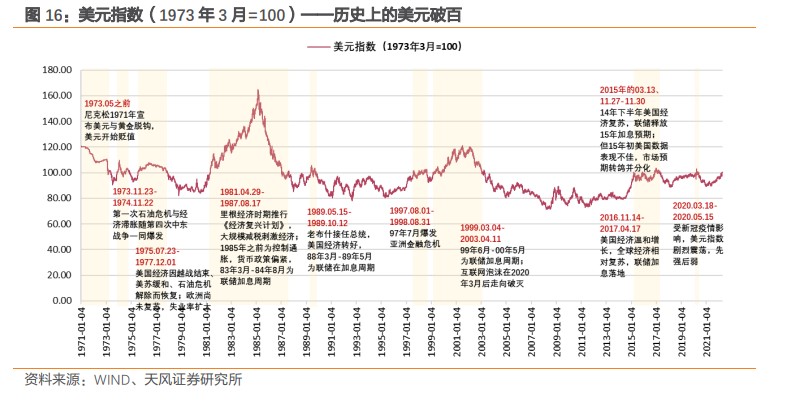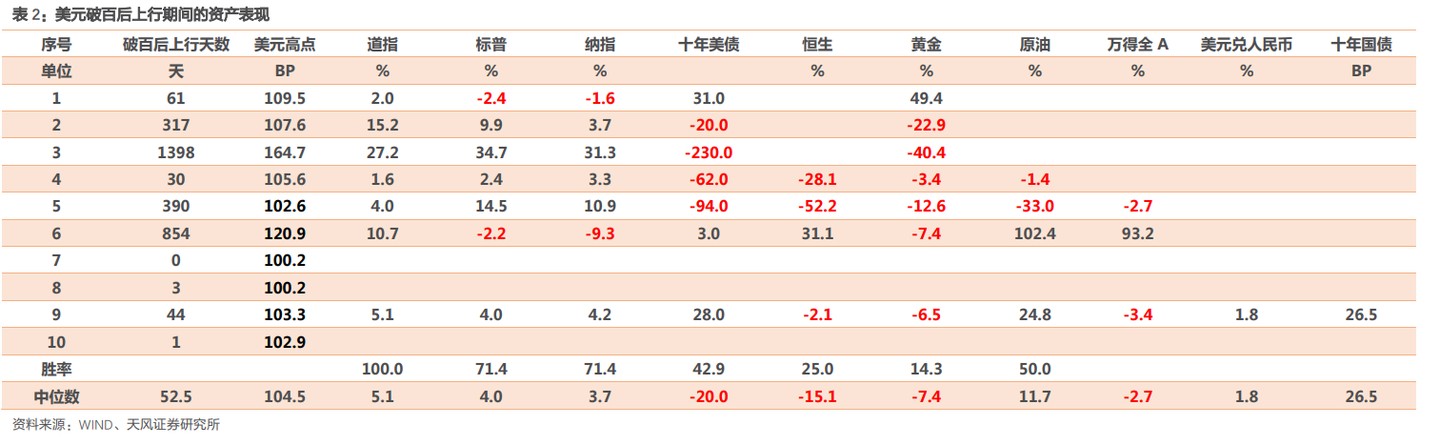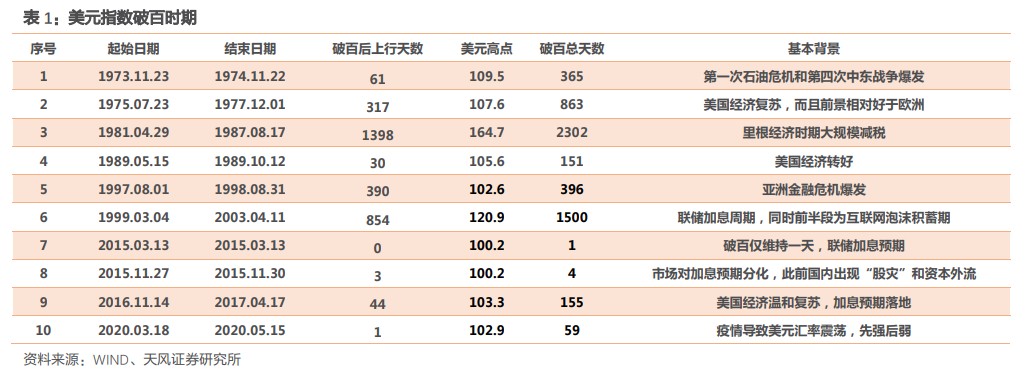 原文作者:孙彬彬、廖翊杰,来源:天风证券,本文节选自:《美元破百,资产如何表现?》