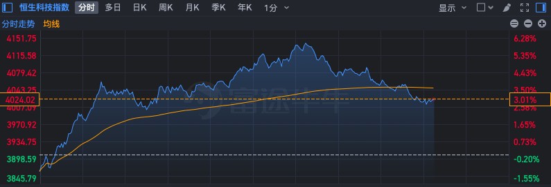 截至目前,恒生指数上涨 1%,逼近 2 万点;恒生科技指数涨近 3%。