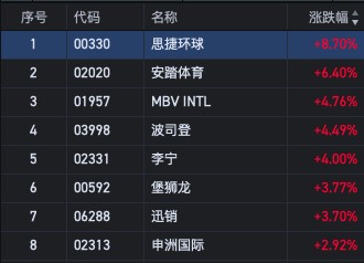 服装板块个股今日集体上涨,棉花国际价格涨至 11 年来高点。波司登涨 6.6%、李宁涨 6%、安踏体育涨 4.86%、思捷环球涨 2.48%、申洲国际涨 2.34%。