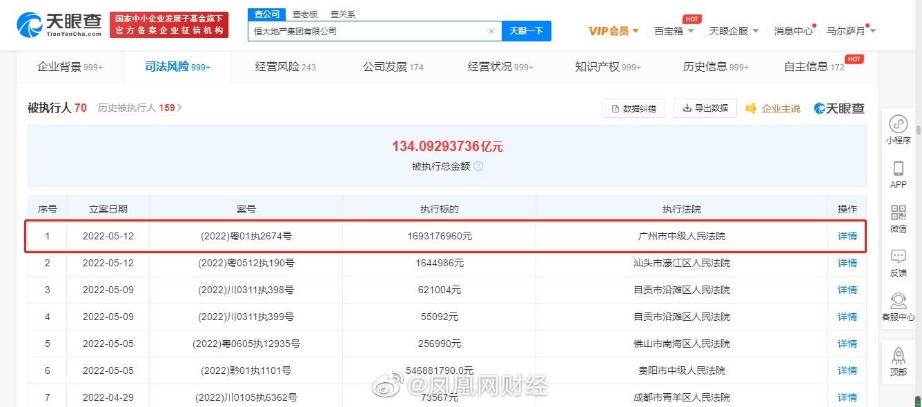 【#恒大地產再被強制執行 16.9 億#】#恒大地產累計被執行 134 億#
