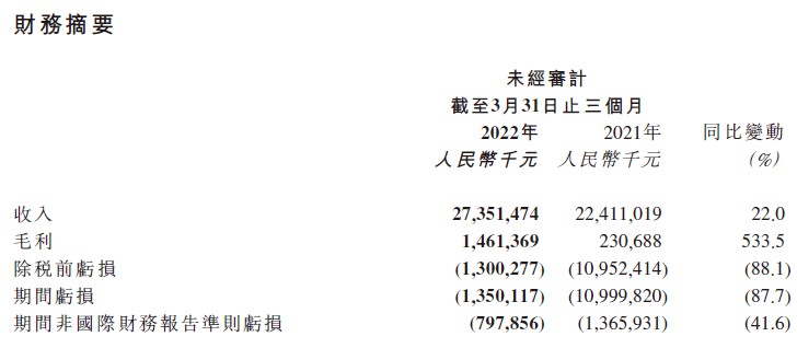财报显示,截至 2022 年 3 月 31 日,京东物流已在全国运营了约 1400 个仓库,含云仓生态平台的管理面积在内,京东物流的仓储网络管理总面积超 2500 万平方米。京东物流表示,因持续对物流基础设施、供应链技术研发、一线员工薪酬福利等投入,以及全力以赴参与上海等多地抗疫保供、助力商家复工复产的投入,导致一季度经调整后的 Non-IFRS 净亏损 8 亿元。