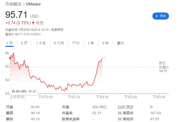 截止上周五美股收盘,VMware 的市值接近 403 亿美元,较 19 年峰值下跌了近一半,与年初相比也已跌去近 20%。英国《金融时报》评论称,如果博通想成功吃下 VMware,要付出的价格肯定会超过 430 亿美元,甚至有可能超过 500 亿美元。