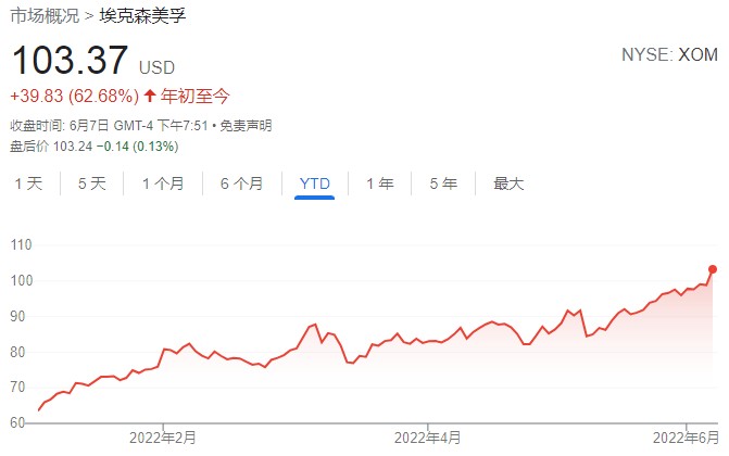 一些华尔街分析师持续看好埃克森美孚,上调其目标价与业绩预期。埃克森美孚的股价年初至今已经累计涨超 62%,市值超过 4354 亿美元。