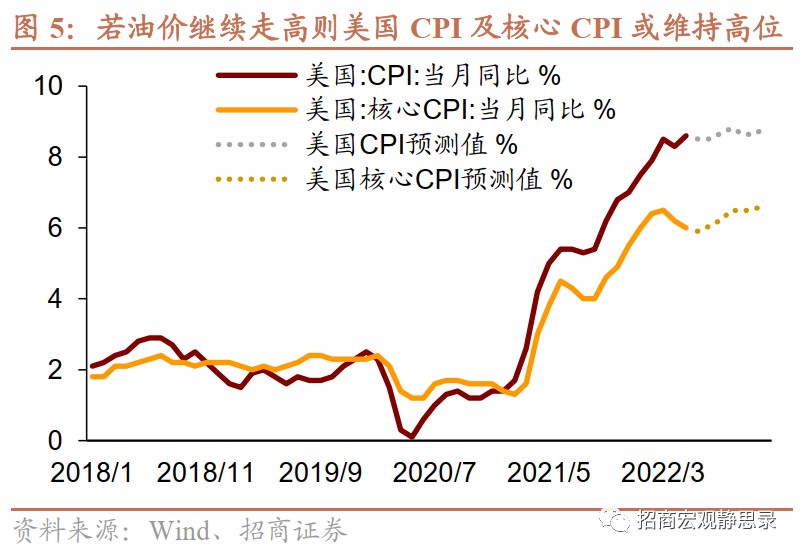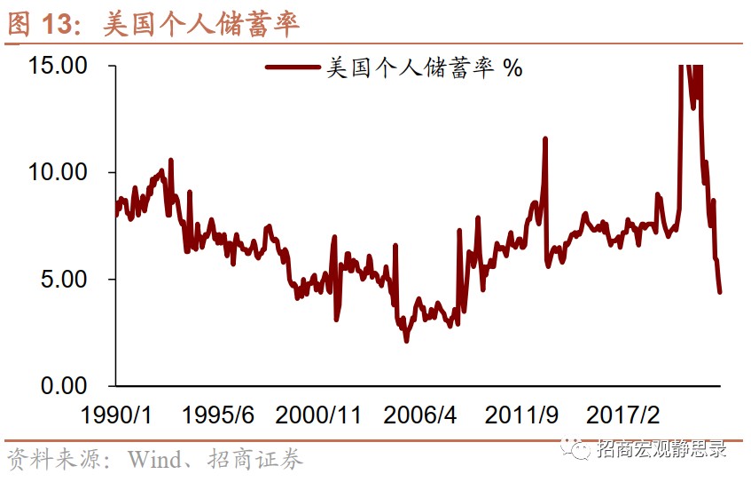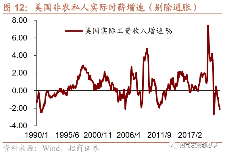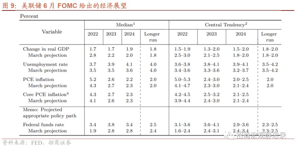 本次 FOMC 经济展望将今年全年经济增长下修至 1.7%,而 Q1 美国实际 GDP 同比增速仍有 3.5%(环比折年率为-1.5%),可见联储认为下半年美国实际 GDP 同比增速大概率降至 1% 下方,甚至接近衰退。4 月中旬美国 30 年期固定抵押贷款利率飙升至 5% 上方,引发 4 月新屋销售折年数降至 591 千套,仅略高于疫情暴发当月(2020 年 3 月)水平。随着贷款利率维持高位甚至进一步攀升,美国地产销量还将下滑,下半年新屋开工数据堪忧。此外,剔除通胀后的美国非农私人实际时薪增速降至-2.1%,低于金融危机前水平;4 月个人储蓄率也骤降至 4.4%,且 60% 收入分位数及以下家庭储蓄率均已转负。总体而言,下半年美国消费动能也将明显衰减。我们预计 Q3 末美国失业率就有望回升,7 月再度加息 50-75BP 后,美联储或将逐步开始考虑不再加息。但结束加息前,我们首先要看到失业率回升,因此尚不能确定具体时点。