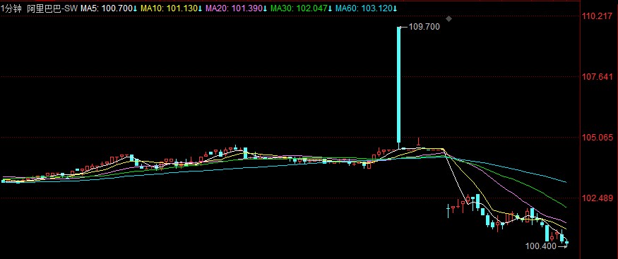 个股方面,阿里巴巴股价再度跌破 100 港元,现跌近 5%。