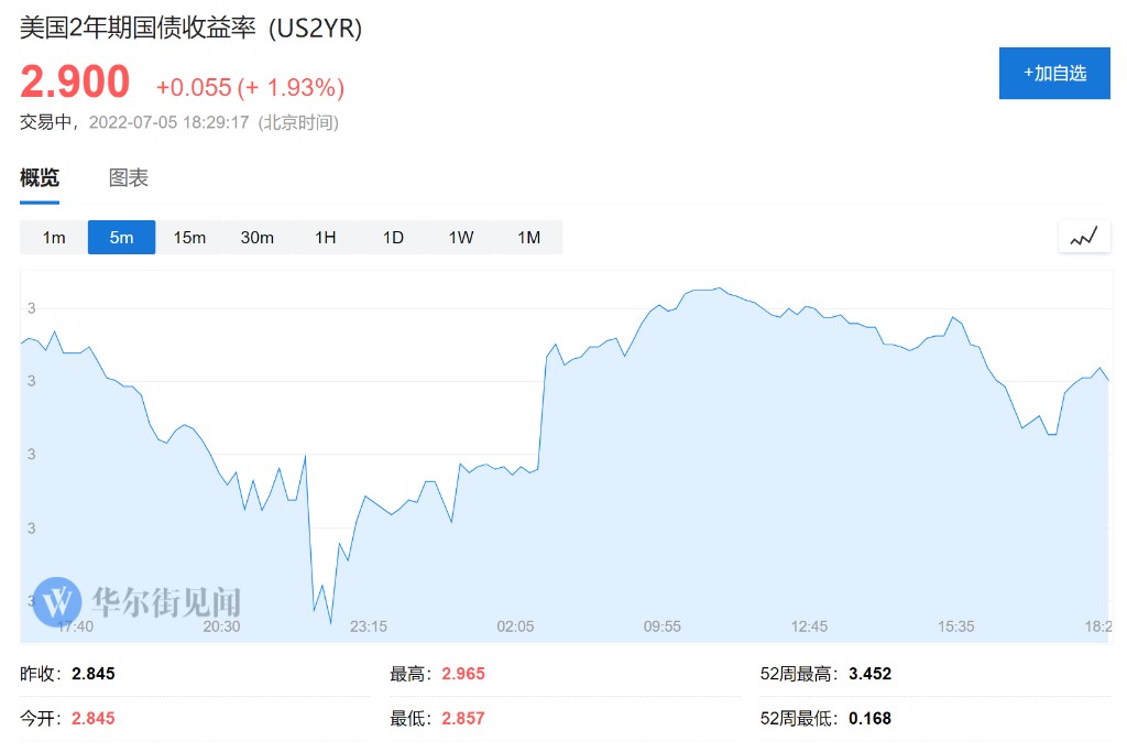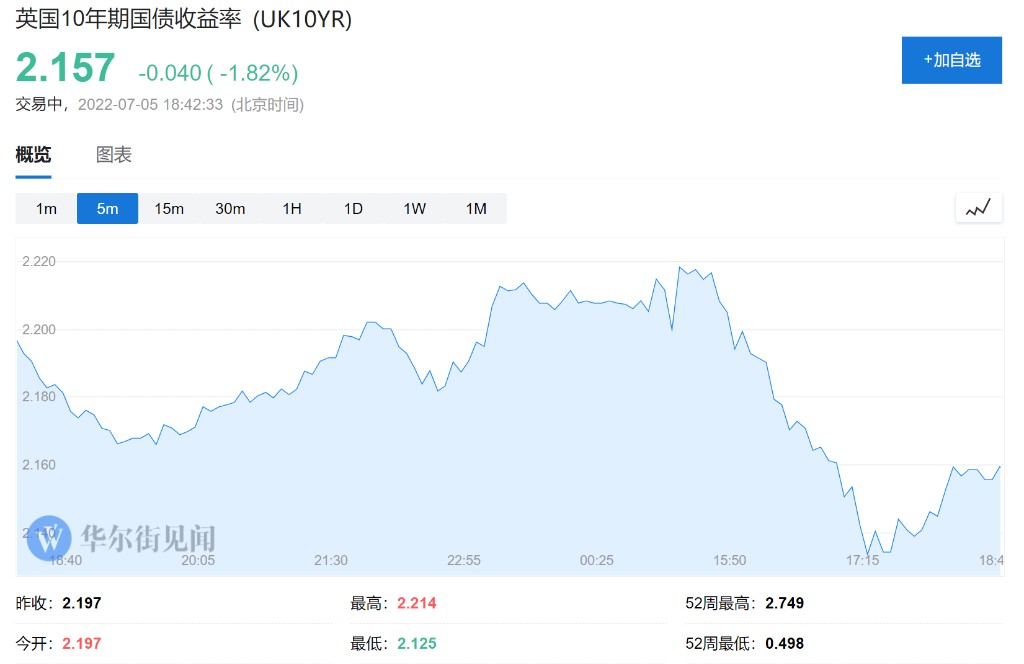 由于避险情绪占据上风,美国国债减少了跌势,两年期国债收益率上涨 2 个基点,此前曾上涨多达 13 个基点,截至发稿,2 年期美债收益率为 2.9%。欧洲债券在经历周一的抛售之后也有所反弹,截至发稿,英国 10 年期国债收益率为 2.157%。