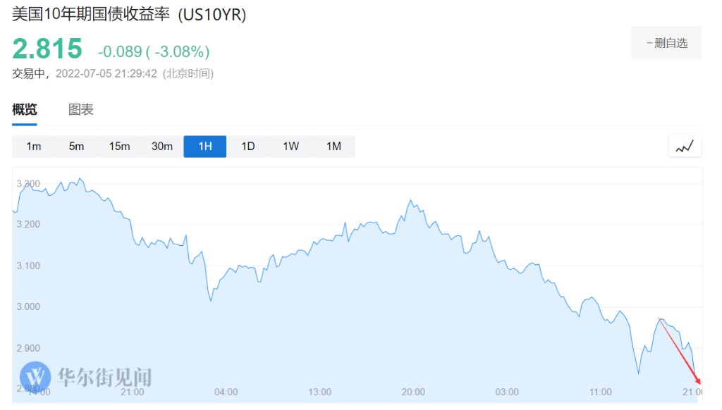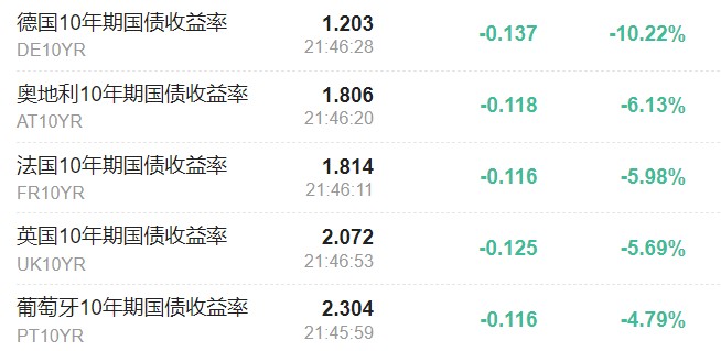 受避险情绪影响,欧美债市集体走高。美国 10 年期国债收益率从早间的高点下行 14 个基点至 2.82%。