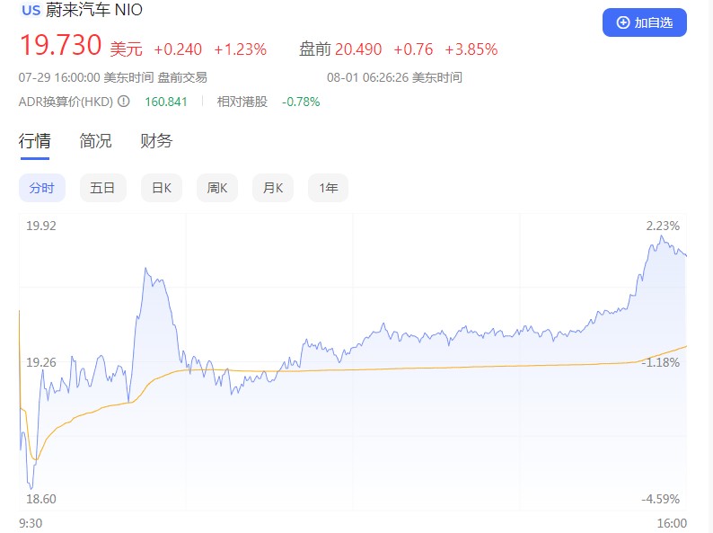 交付数据公布后,蔚来汽车美股盘前涨近 4%,下午公司港股收涨 8%。