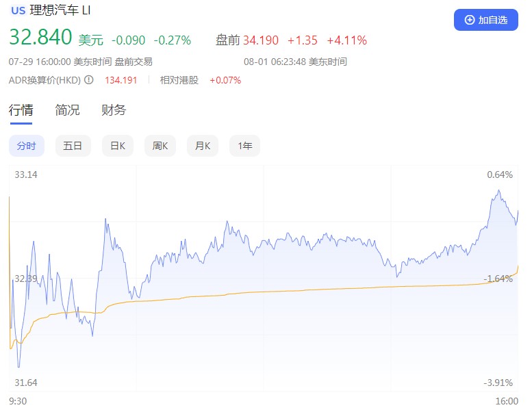 交付数据公布后,理想汽车美股盘前涨超 4%,下午公司港股收涨 6%。