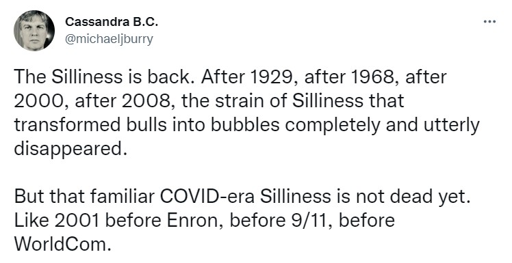 这位电影《大空头》的原型、Scion Asset Management 的创始人把当前的美国市场和安然丑闻爆发前、911 恐怖袭击之前的情形相提并论,并说: