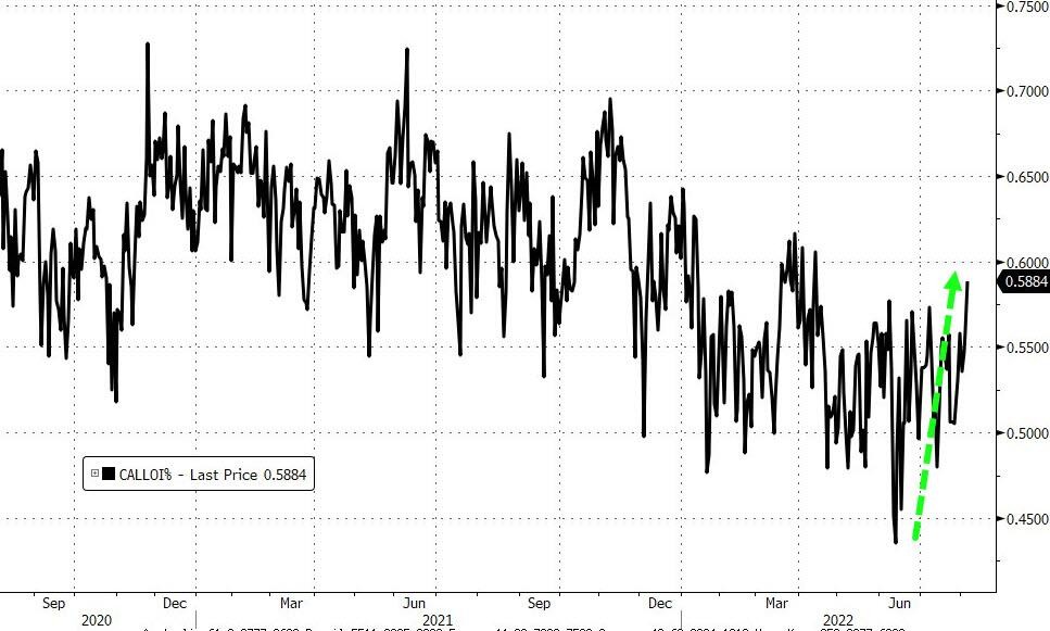有迹象表明,散户在追逐当前美股的这波涨势。在一天的第一个交易小时内,我们看到看涨期权买盘超过看跌期权买盘的程度,达到上次散户(逼空)热潮以来之最。