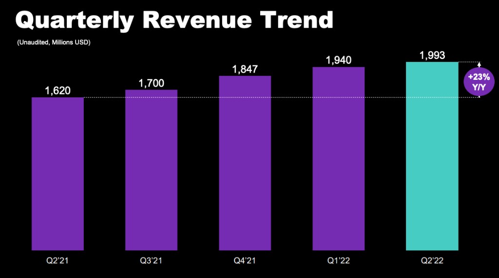 - 二季度营收 19.9 亿美元,创历史新高,同比增长 23%,预期为 19.7 亿美元。