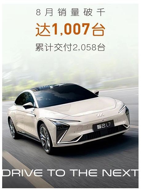 8 月份,智己 L7 的销量为 1007 台。新车于今年 6 月中旬正式开启交付,目前已累计交付 2058 台。
