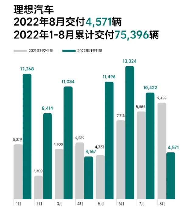 今年 8 月,理想汽车共交付新车 4,571 辆,相对 7 月的 10,422 辆可以说来了个「腰斩」还多。